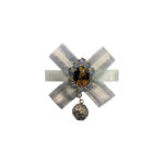 6,00 €Medalla de cuna calada para niño de la Virgen con cinta rosa.
